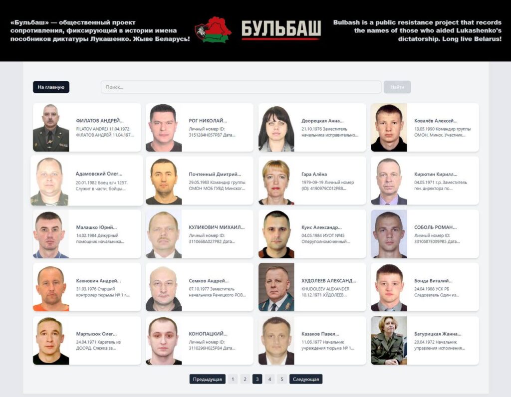 Представители белорусской оппозиции объявили о запуске онлайн-платформы «Бульбаш» https://bulb-ash.info/, которая представляет собой базу данных с информацией о сотрудниках силовых ведомств, связанных с деятельностью действующих властей.…